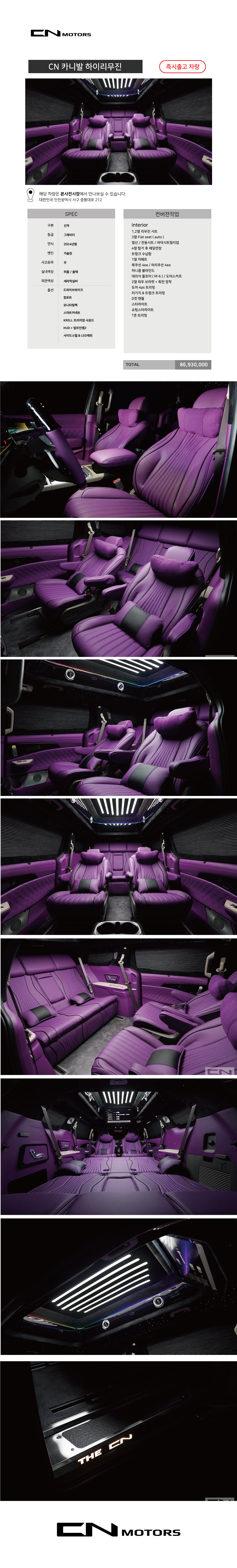 씨엔모터스는 계약을 유도하기 위한 허위차량이 아닌 실제 보유중인 차량만을 즉시출고 하고 있습니다.